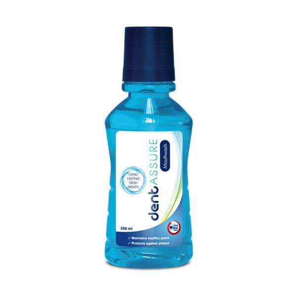 Dent assure Mouthwash 250ml is specially formulated to support daily oral hygiene by helping fight germs, reduce plaque buildup, and protect against bad breath. Its refreshing formula reaches areas brushing alone may miss, ensuring thorough mouth cleanliness.